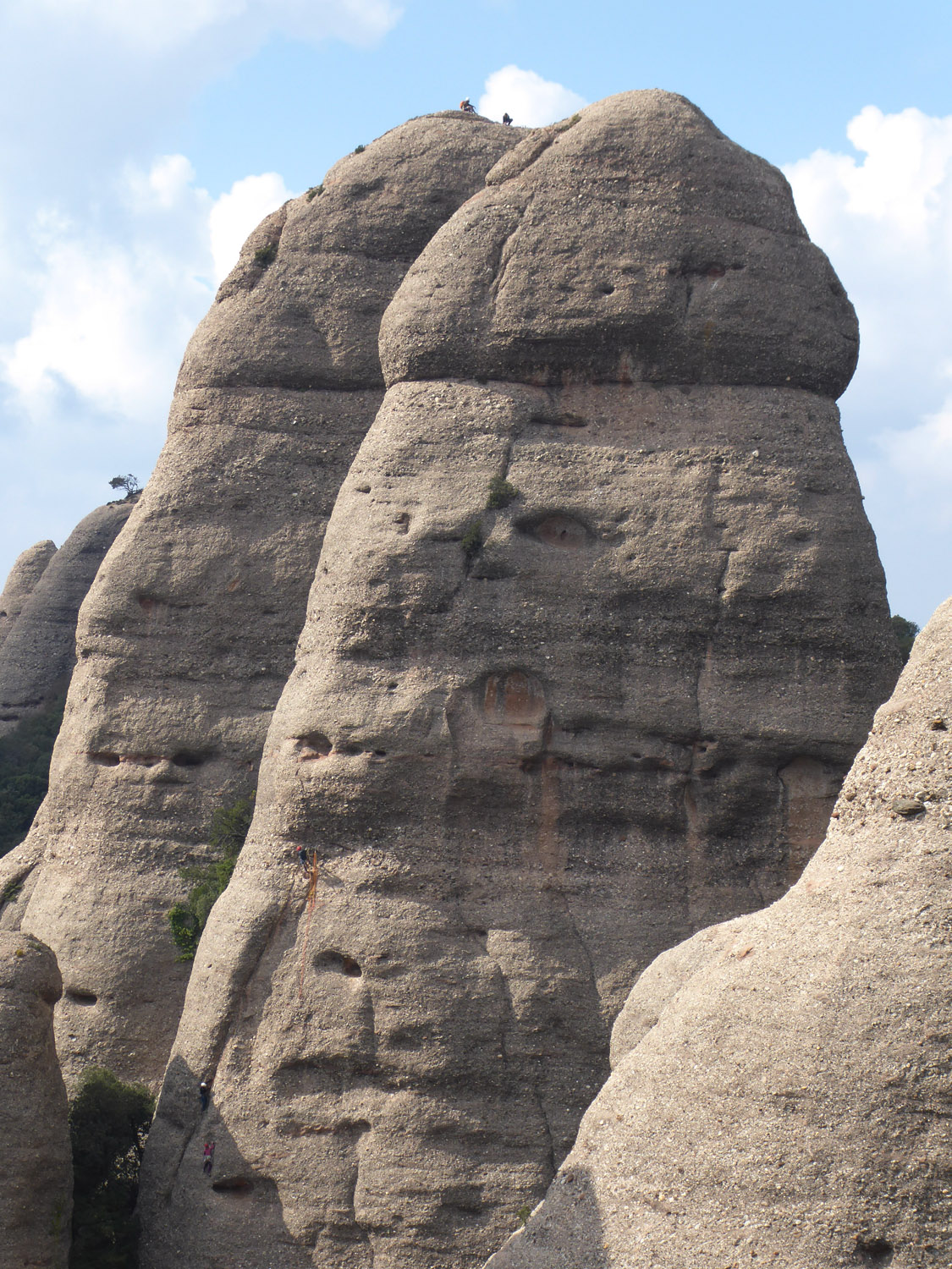 El último largo es realmente memorable, un murazo lleno de franjas horizontales con buena presa, interrumpido por algún pasito. En la guía pone V+, flipamos un poco con el grado. Después leyendo otras referencias ya aparece el 6a+, mas acorde con la realidad, aquí ya no están tan cerca los seguros.