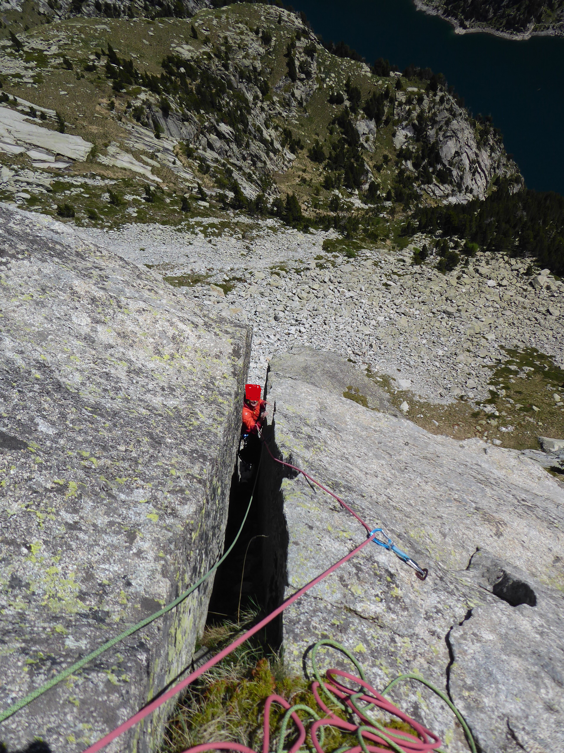 Tras leer los comentarios de Jaume en su blog , dónde la cataloga como un auténtico love-climbimg, nos llevamos una ligera sorpresa puesto que no nos parece tan fácil, ni mucho menos. Es una vía en la que hay que escalar, con tramos obligados y algún punto expo…